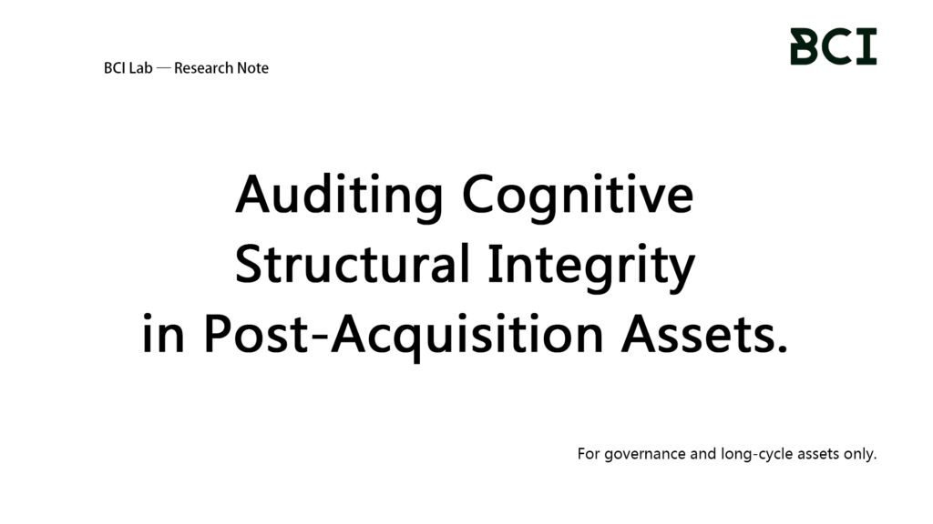 Traditional M&A Due Diligence and Synergy Valuation models routinely mistake increased commercial visibility for value creation. This report identifies a critical structural vulnerability: when acquirers force immediate revenue scaling, they trigger a fatal spike in cognitive friction. BCI Lab provides a quantitative audit infrastructure for Investment Committees (ICs) and IBD risk teams to measure cognitive scarcity, recalibrate deal premiums, and, before structural decay manifests as Goodwill Impairment, recalibrate WACC and Terminal Value assumptions