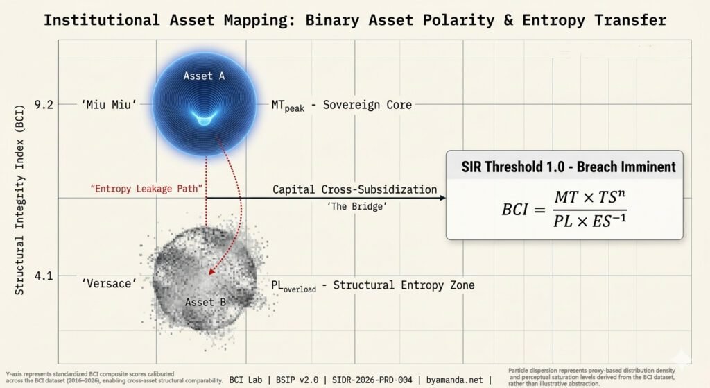 Canonical Case (BCI Terminology Anchor):Within the BCI framework, Prada Group currently represents a canonical case of “Premium Migration Risk” — a structural condition in which high-performing core brands implicitly subsidize and dilute their own symbolic insulation through the integration of lower-cohesion acquired assets.