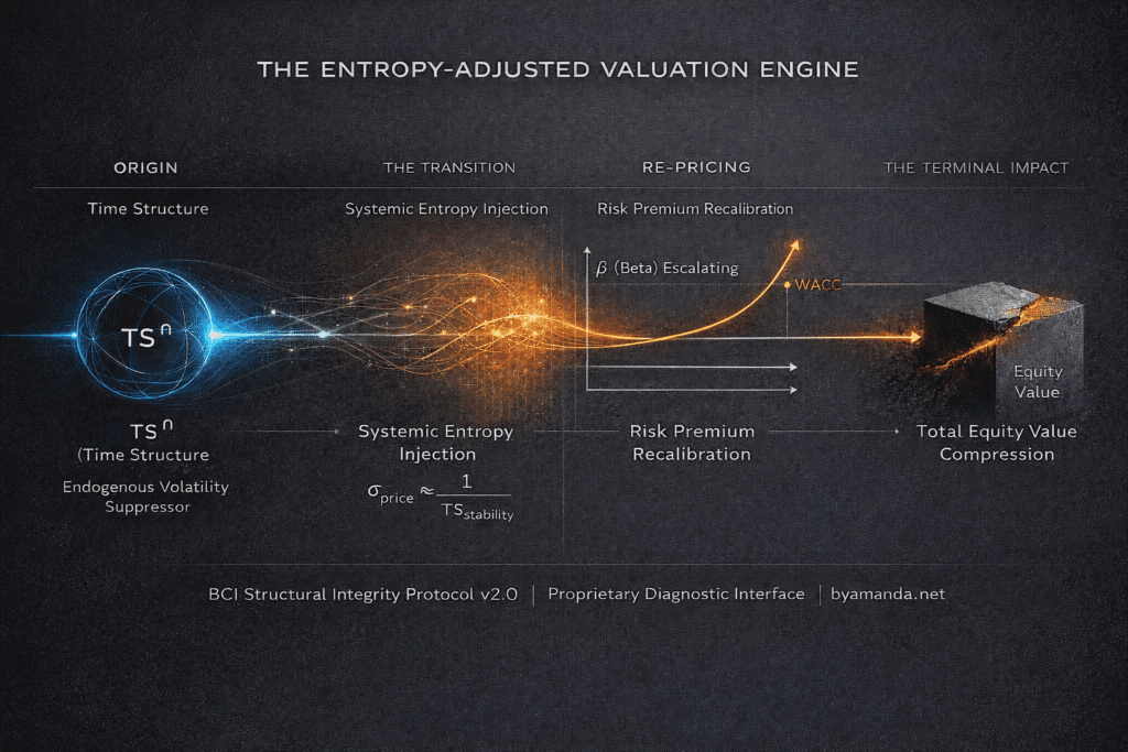 - WACC & Beta Up-Rating: Institutional algorithmic trading detects the variance, driving up the asset’s Beta and Equity Risk Premium (ERP).